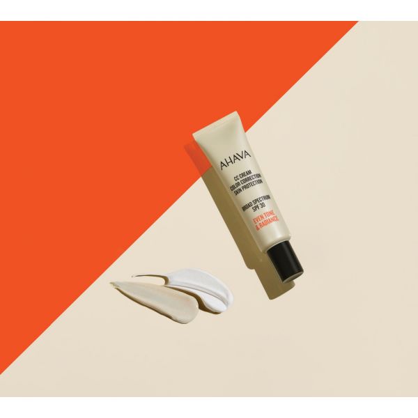 CC Krēms ar SPF30 aizsargā ādu, izlīdzina ādas toni ar mazām, neredzamām, krāsu koriģējošām daļiņām, kas sajauktas ar AHAVA Osmoter™ Nāves jūras minerālu maisījumu, lai aizsargātu jūsu ādu no Saules.